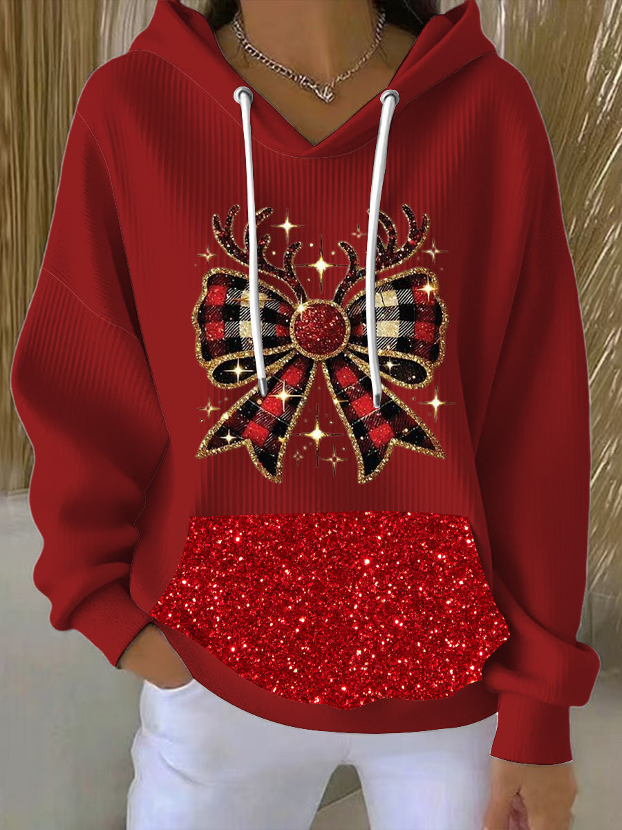 Ženské mikina červená s třpytivým lúpnem a vánočním motivem