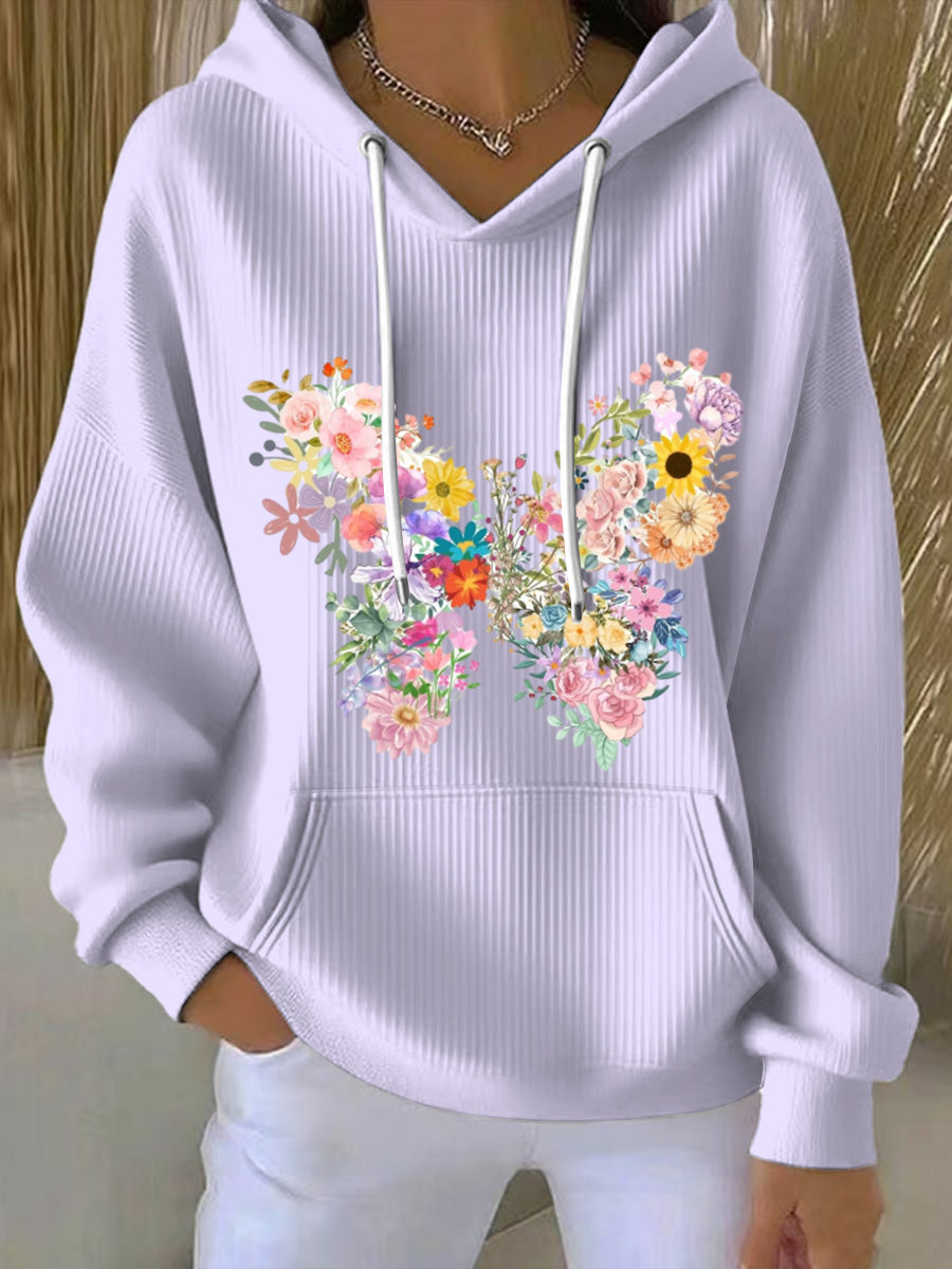 Ženské vibrant multicolor květinová tisk světlá fialová mikina