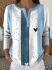 Ženské vintage abstraktní pruhované srdceotisk vneck top
