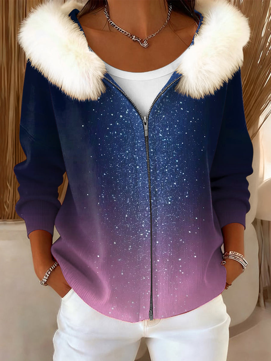 Ženské vintage gradient barva umělecké kožešinytrim kapucinový kabát