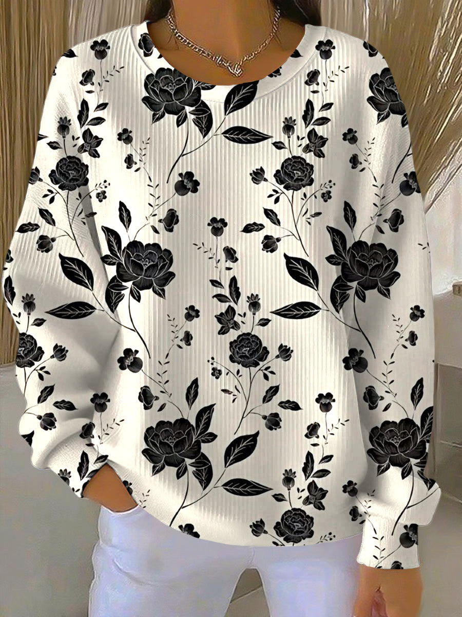 Ženské vintage květinová silueta příležitostné štáb krku pulóver
