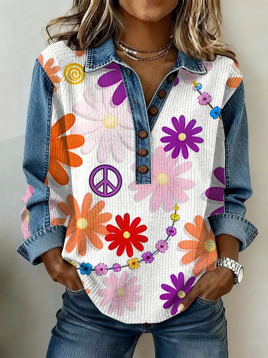 Ženské vintage květinová tisk neformální s dlouhým rukávem top