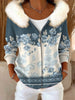 Ženské vintage květinové patchwork umělecké kožešinytrim s kapucinou kabát