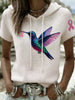 Ženy retro pearl hummingbird rakoviny prsu povědomí casual hooded tshirt