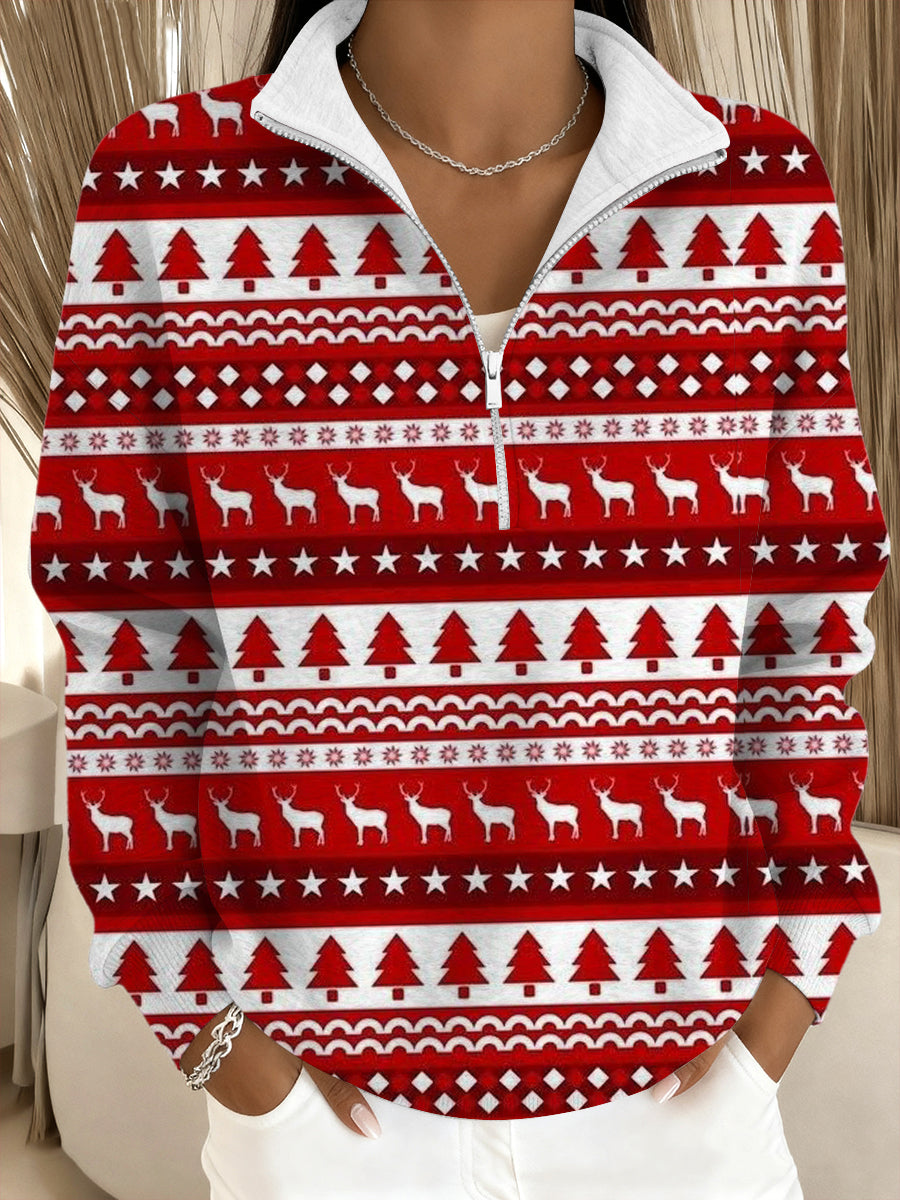 Ženy slavnostní červené vánoční vzor stojangolier mikina