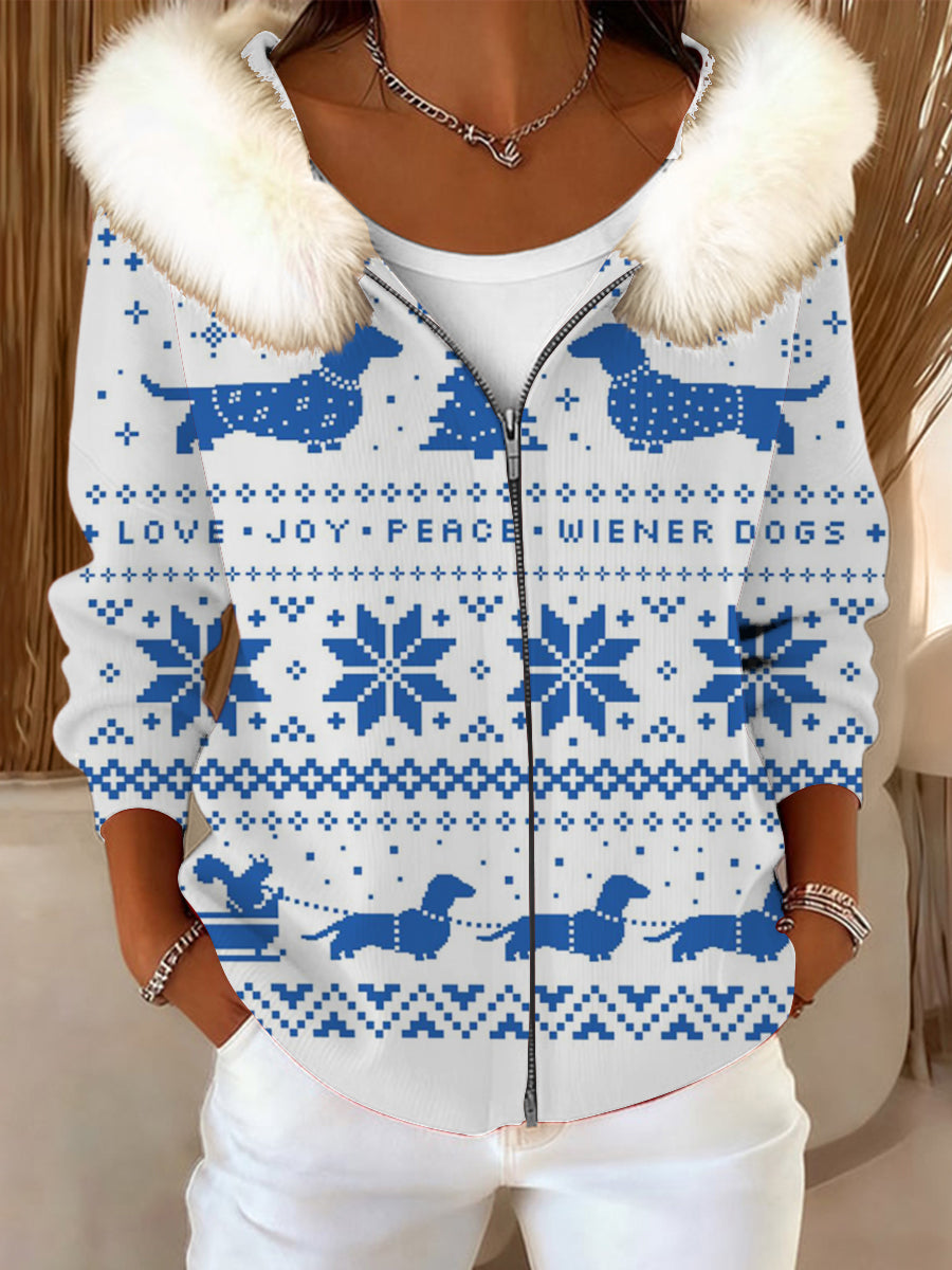 Ženy unikátní wiener pes tisk kožešinový obojek bunda