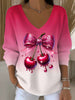 Ženy vintage cherry luk umění vneck top
