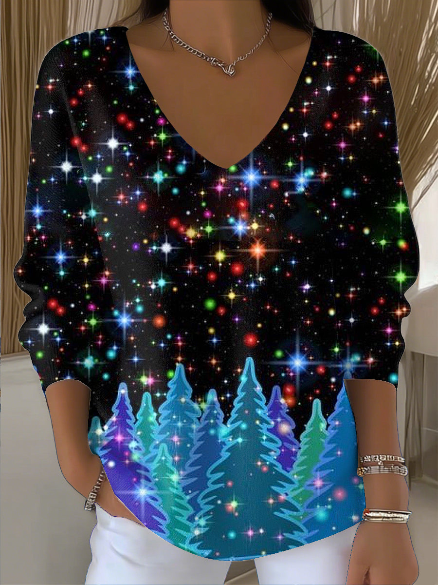Ženy vintage šumivé vánoční stromeček umění v krku top