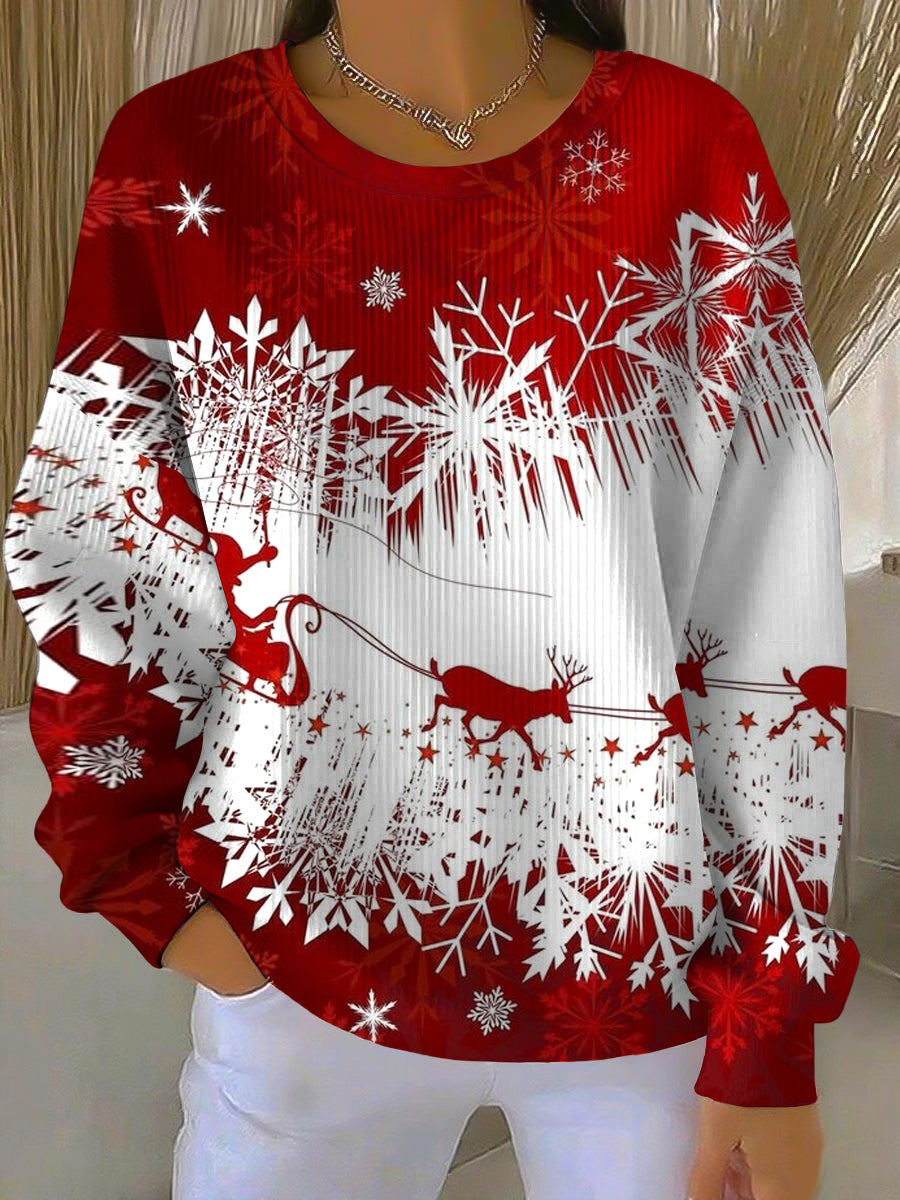 Ženy vintage vánoční soby příležitostné posádka krku pulóver